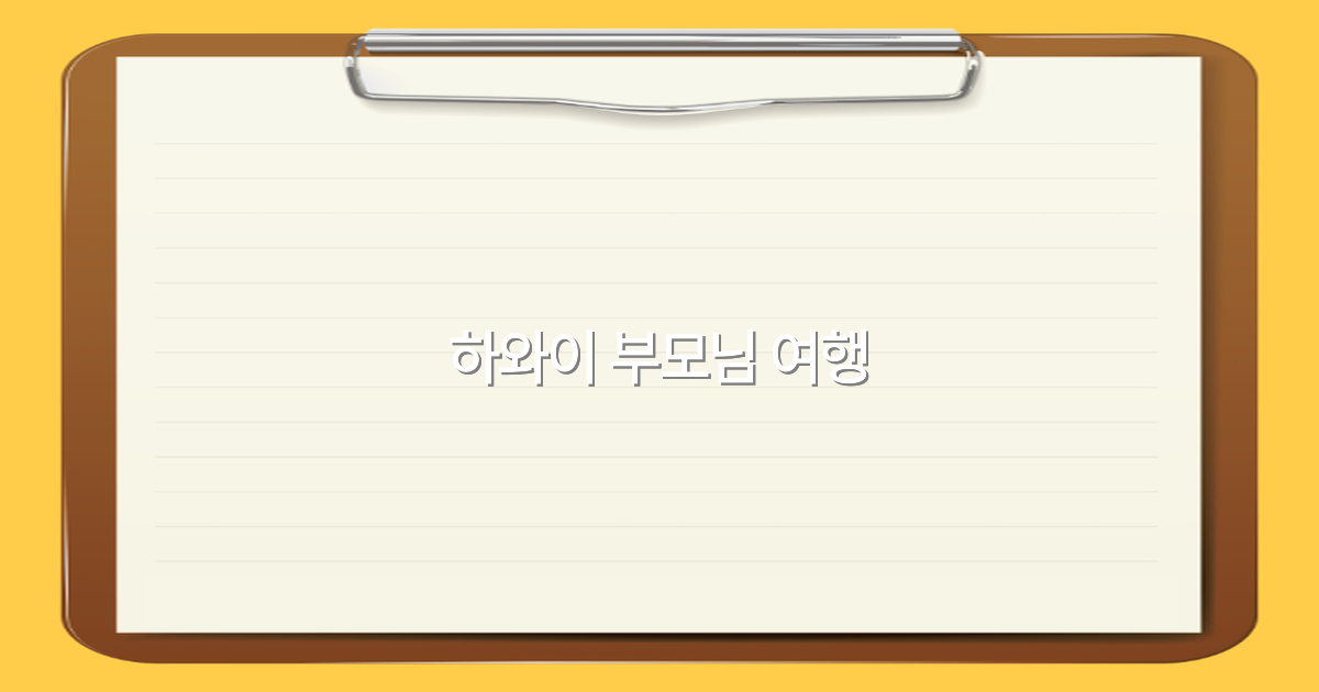 여러분의 여행 계획에 이 가이드가 도움이 되길 바라며, 지금 바로 여행 일정과 준비를 시작하세요. 사랑하는 부모님과 함께하는 하와이 여행이 평생 잊지 못할 최고의 순간이 되시길 기원합니다!