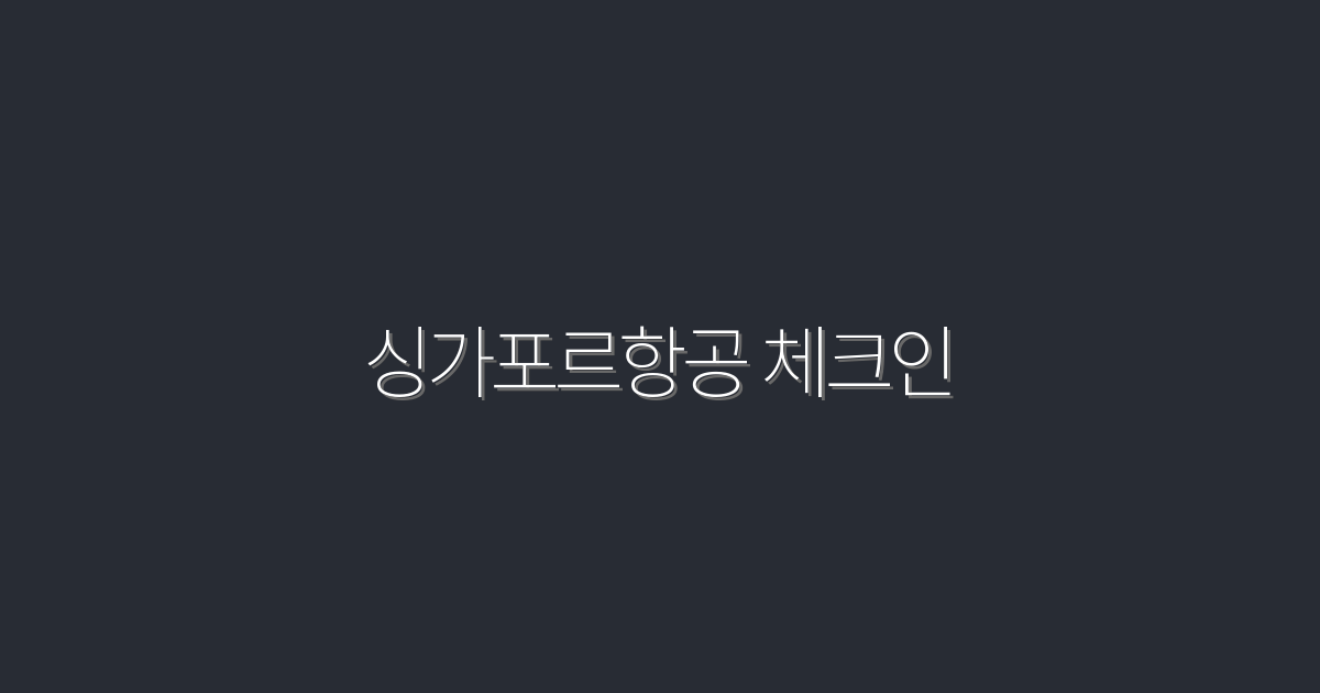 싱가포르항공 체크인 2026 최신 꿀팁 7가지