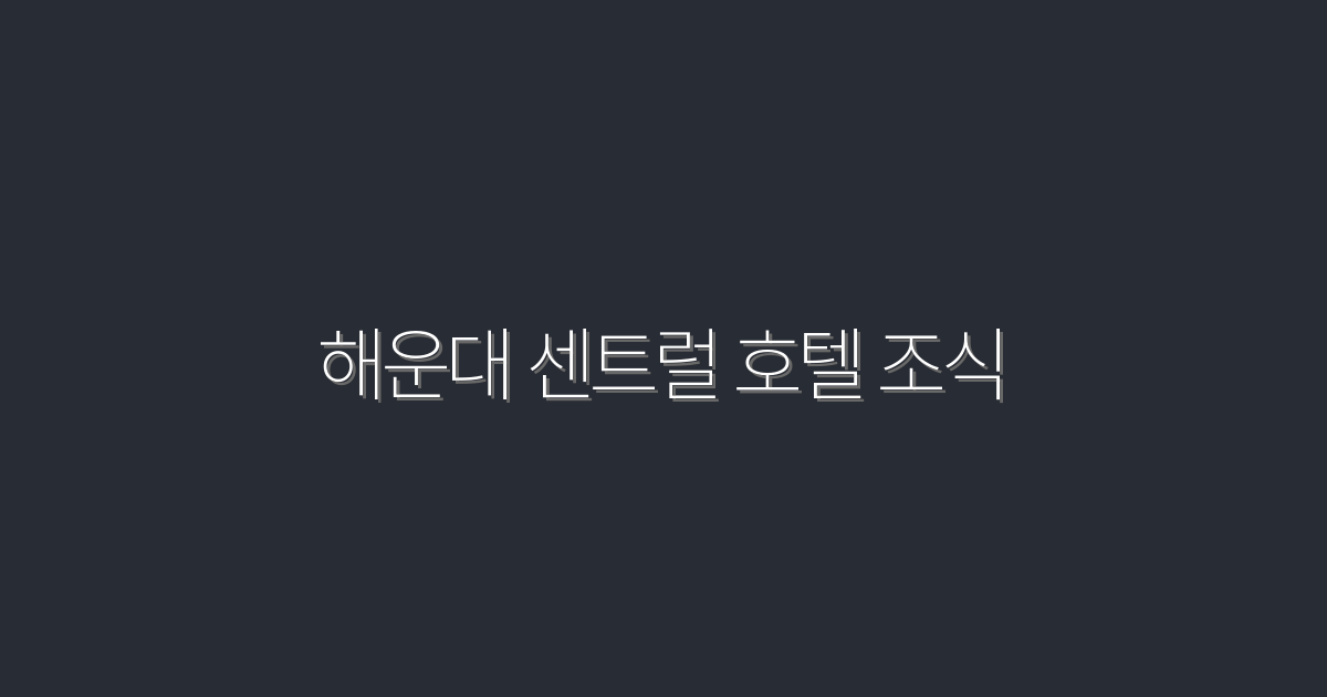 해운대 센트럴 호텔 조식, 2026년 최신 5가지 혜택