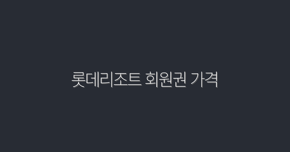 2026년 롯데리조트 회원권 가격 및 혜택 총정리!