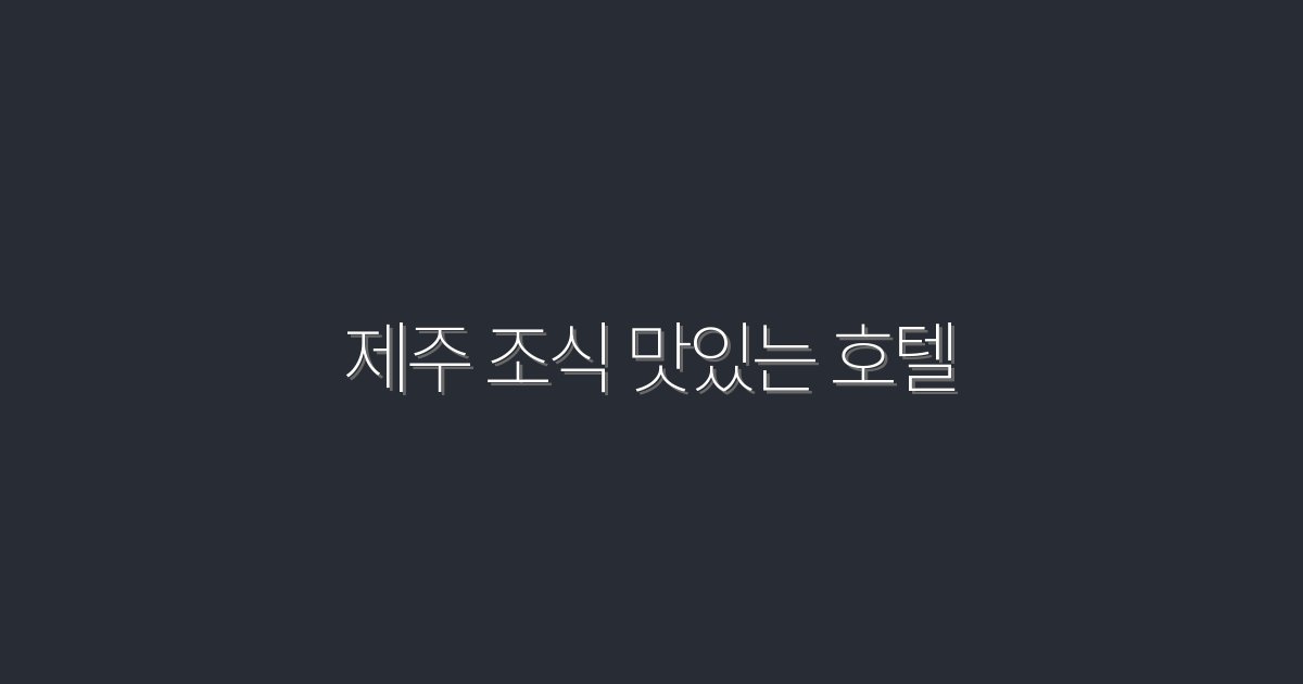 2026년 제주 조식 맛있는 호텔 5곳, 혜택 가득!