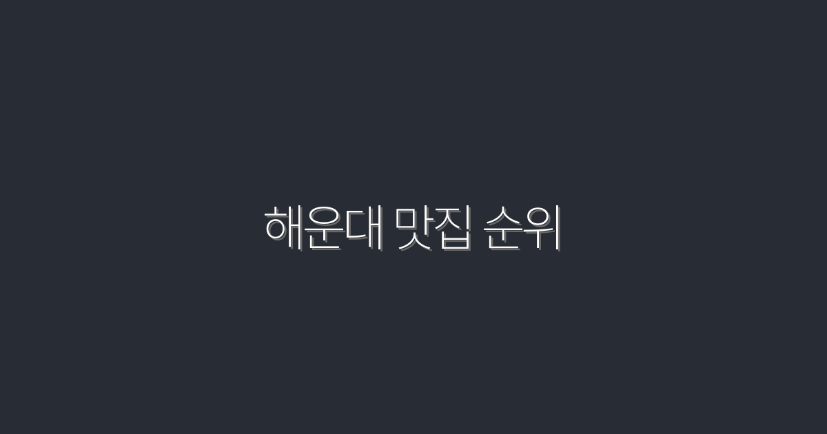 2026년 해운대 맛집 순위 TOP 10과 추천 메뉴 공개!