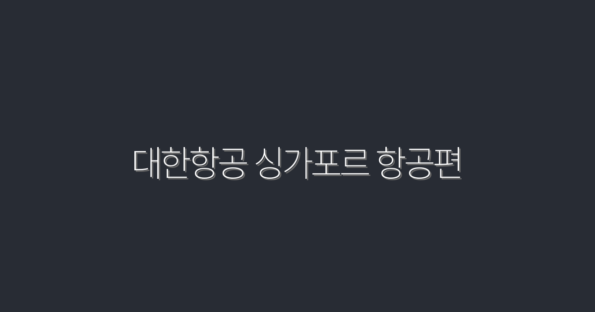 2026년 대한항공 싱가포르 항공편: 혜택과 비밀 공개!