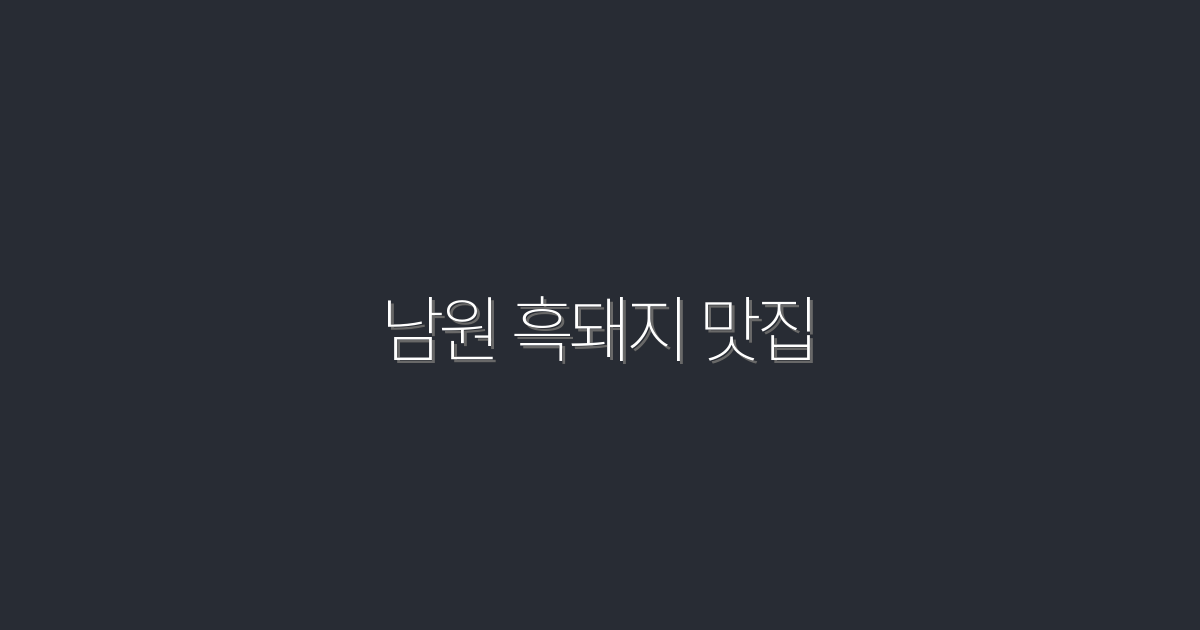 2026년 남원 흑돼지 맛집 TOP 5! 꼭 가봐야 할 이유!
